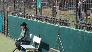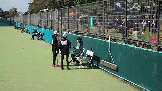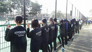 個人戦の試合前の様子。フェンス越しに皆で応援しました。