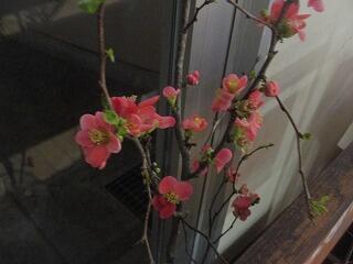 今日3月9日(月),卒業式に向けて,1・2年生が会場を準備しました。その頃,地域の方が玄関に,お花を生けてくださいました。桜・木瓜が,明日の式を華やかに彩ります。本当にありがとうございました。