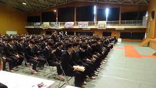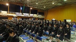 *受賞された皆さん、おめでとうございます。2年生は体育館で式の様子を見守りました。3年生の立派な態度や雄姿が伝わり、1、2年生へのバトンが着実に引き継がれていました。