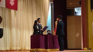 3月9日(月)、卒業式予行前に同窓会長様においでいただき同窓会入会式を実施しました。