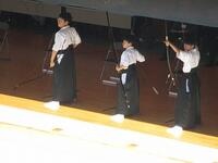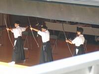 男女とも正射必中の精神の下,弓を引くことに集中しました。3人の気持ちを1つにして,頑張りました。