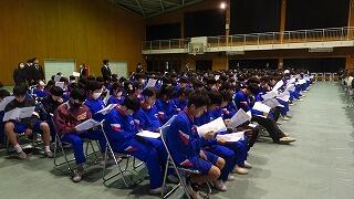 ・在校生は今までお世話になった3年生に感謝するとともに、歴史と伝統のある校風樹立のための決意を新たにする。
