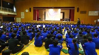 *受賞された皆さん、おめでとうございます。2年生は体育館で式の様子を見守りました。3年生の立派な態度や雄姿が伝わり、1、2年生へのバトンが着実に引き継がれていました。