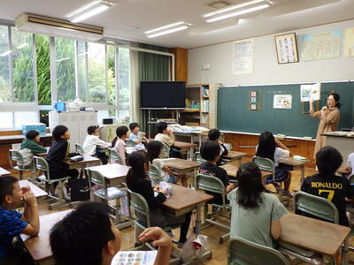 昨年度に引き続き,外国語科「This is my town」の学習で,那須高原小学校とオンラインで交流しました。