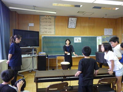 4年生と3年生が,音楽の授業で学習した曲を合奏しました。
