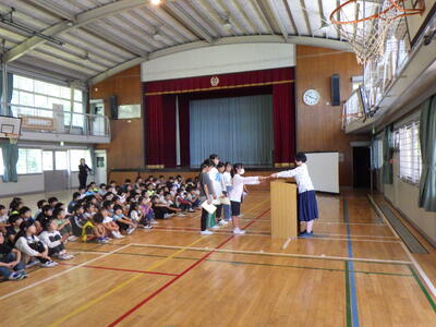 卒業生の,善行児童表彰を行いました。