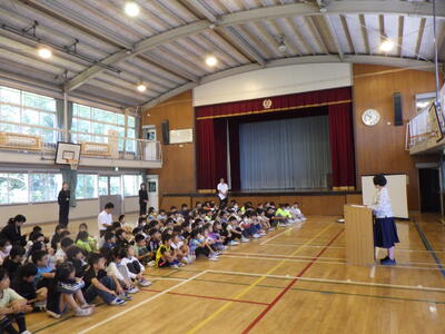 次に,全校スピーチです。今回のテーマは,「今がんばっていること」「将来の夢」「うれしかったこと」「夏休みの思い出」「運動会で頑張ったこと」など様々でした。