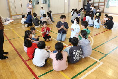 在校生お迎えの言葉では,6年生が優しく語り掛けるように話をしたので,1年生もよく話を聞いていました。