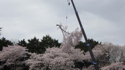 満開に咲き誇るソメイヨシノですが,とうとう切られる日が来てしまいました。
