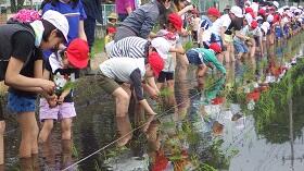 板戸ネイチャークラブの皆様による「田んぼの生き物調査」が,22日(土)に行われました。魚やザリガニ,カエルなどいろいろな生き物を観察することができました。ネイチャークラブの皆様には,5年生も生き物調査でお世話になっています。地域の教育力のすばらしさを感じる時間となりました。