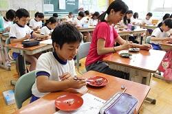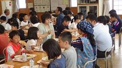 地域学校協議会でお世話になっている皆様をお招きし,ランチルームで会食をしました。給食を久しぶりに食べられた方もいらっしゃり,皆様からとてもおいしかったとの感想をいただきました。子どもたちに囲まれ,味も格別だったようです。