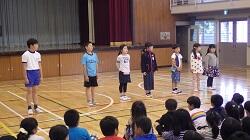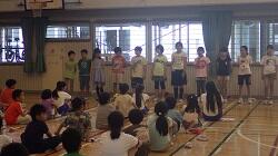 昼会が開かれ,代表児童6名によるスピーチが行われました。「今,頑張っていること」や「夏休みに行ったこと」などをテーマとした話がなされました。また,スピーチを聞く児童も話の内容をしっかり聞き取っていました。
