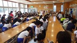 夏休みを前に全校集会が行われました。厳しい暑さのため,会場を体育館からエアコンのあるランチルームに変更して実施しました。はじめに市水泳大会に出場した選手たちへ記録証の伝達がありました。続いて代表児童によるスピーチがです。6人の児童が夏休みの目標や学校生活でこれまで頑張ってきたことなどを発表しました。校長からは「夏休みには普段できないことに挑戦してほしい」「家庭や地域でいろいろな体験をし,たくさんの人とふれあってほしい」との話があり,最後に児童指導主任から夏休みの過ごし方の注意が伝えられました。夏休み明け,成長した姿で子どもたちの姿をみるのが楽しみです。