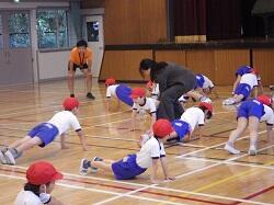 本校で体力向上・健康・食育指導して取り組んでいるスクスクタイムが昼休みに行われました。今回は,元気っ子健康体力チェックに向けて,体育主任の大坪先生から記録を伸ばすためのポイントや練習方法などの指導がありました。