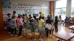 「地震」を想定した避難訓練を行いました。避難の時は,「おさない かけない しゃべらない もどらない ちかづかない」の「おかしもち」の約束があります。初めて参加した1年生も先生のお話をよく聞いて安全に避難することができました。学校長からは東日本大震災の学校の様子についての話がありました。災害はいつ身近なところで起こるか分かりません。子どもたちは,真剣に訓練に臨むことの大切さがわかったようです。全員で生活科室に集まり,DVDを使って,避難するときの注意点を復習しました。