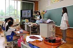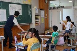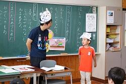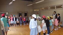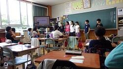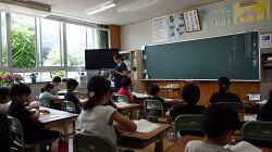 毎年お世話になっている渡辺武夫様,谷田貝チカ子様から板戸盆踊りのご指導を受けました。あいにくの雨のため,1~3年生は生活科室,4~6年生は体育館で行いました。板戸盆踊りは,運動会の午前中最後の種目で,地域や保護者の皆様もご参加いただける種目です。当日,ぜひ子どもたちと一緒に踊ってくださいますようお願いいたします。