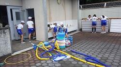 5・6年生が,着衣水泳を行いました。万が一に備え,服を着た状態で水に入ったときの動きにくさや水の中で浮いて待つ体験をしました。この着衣水泳をもっって,今年度のプールの使用が終わりとなります。