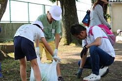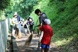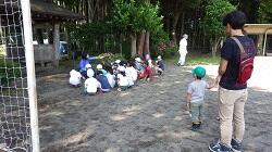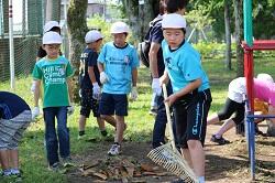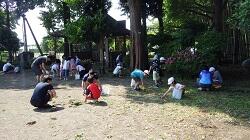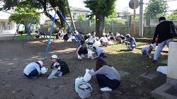 全校児童で夏休み前の校庭の除草作業を行いました。厳しい暑さが予想されましたので,朝の涼しい時間に縦割り班で行いました。
