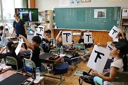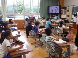 会話科「英会話の時間」の研究授業が5年生教室で行われました。様々な職業や時間割について聞き取る内容でしたが,子どもたちは意欲的に授業に取り組んでいました。「英会話の時間」は本校の特色ある教育活動であり,今後も授業の充実に努めてまいります。