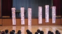 いじめゼロ強調月間の取組の一つとして,「いじめゼロなかよし集会」が行われました。はじめに,代表委員から各学年で考えた「いじめゼロ標語」が発表されました。続いて,校長から講話があり,「心がつながる仲間になろう」との話がなされました。