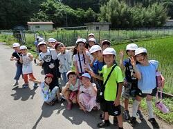 毎年お世話になっている山中さんの畑をお借りして,サツマイモの苗植えを行いました。菅谷先生に植え方を教えていただいた後,縦割り班で一斉に苗を植えました。上級生が下級生を優しく教えるなど,協力し合って楽しく活動することができました。秋には,おいしいおいもがたくさんできることでしょう。