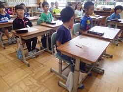 記録的な暑さが続いた夏休みが終わり,子どもたちが大きな荷物を抱えながら元気に登校してきました。今日からまた学校生活が始まります。夏休み明けの集会では,表彰に続いて,学年代表のスピーチが行われました。発表した子どもたちからは,夏休みの思い出や頑張ったことの発表がありました。校長からは,「友達のいいところを見つけよう」「本校の特色である地域の方々との行事をしっかりやりとげよう」との話がありました。様々な活動を通し,たくさんの方とふれあいながら,子どもたちが成長できるよう支援していきたいと思います。ご支援・ご協力をお願いします。