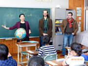 ◆フランスのオルレアン市から,剣道の研修のために来日した方が2名来校なさいました。4年生(英会話),6年生(音楽),3年生(書写)の授業を見学し,給食も一緒にいただきました。オルレアン市は宇都宮市の友好都市でもあります。これを機会に友好の輪が生まれるといいですね。