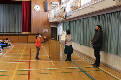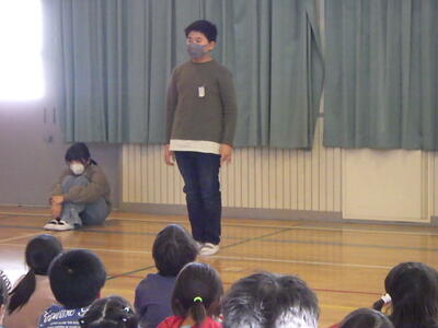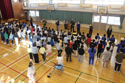 次に,「あわてんぼうのサンタクロース」を全校生で楽しく歌いました。