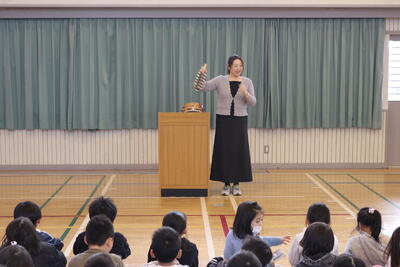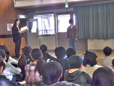 朝の時間に「板戸読み聞かせ隊」の皆さんによる12月の読み聞かせがありました。