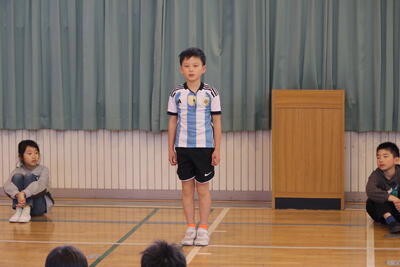 そして,全校スピーチです。各学年1人ずつスピーチをしました。