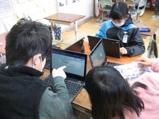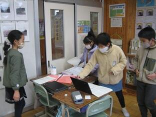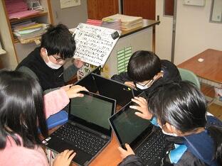 マレーシアのロッジスクールとのオンライン交流会に向けて,4年生が準備しています。