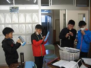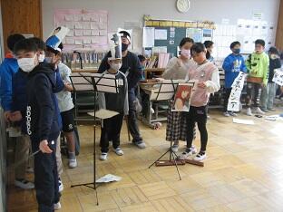 音楽紹介班は,リコーダーの演奏を生で行います。