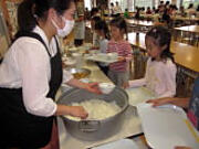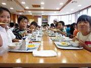 先日の稲刈りで収穫したお米の脱穀,精米が完了し,今日の給食でいただくことができました。通常の米飯給食では,栄養の観点から5%の麦を入れていただきますが,今回は特別に「100%コシヒカリ」でいただきました。新米のおいしさを児童並びに教職員で堪能させていただきました。春先からお世話いただいた齋藤豊さん,ありがとうございました。