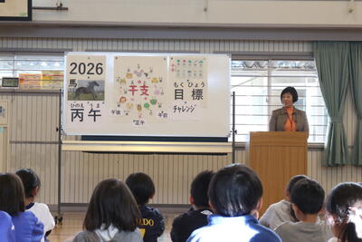 十二支や2026年は丙午の年であることを,各学年に学習問題を出しながら話が進んでいきました。