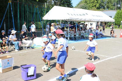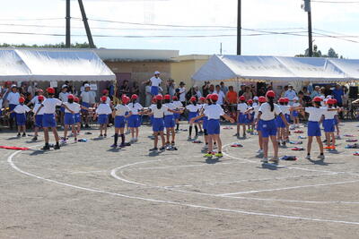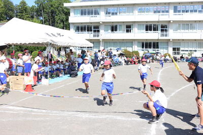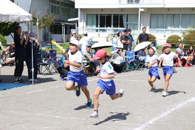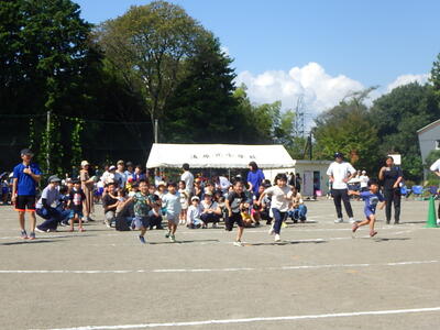 「みんなでかけっこレッツゴー!」では,来年度入学予定のお子さんや本校児童の弟さんや妹さんが走りました。