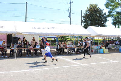 来賓の方や地域にお住まいの高齢者の方との種目「ようこそ清北小へ」は,2年生が行いました。