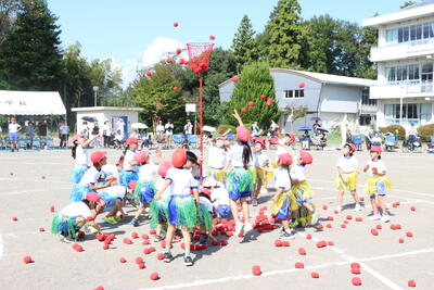 団体種目は,1,2,3年生は「チェッチェッコリ玉入れ」です。