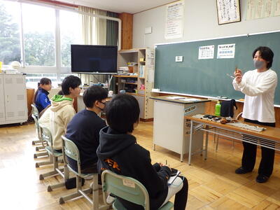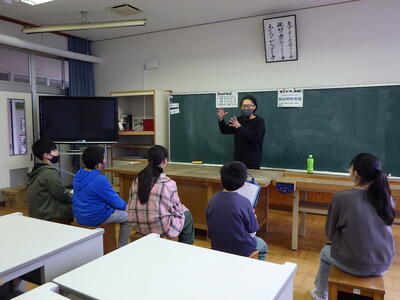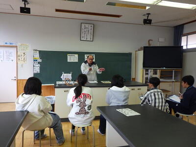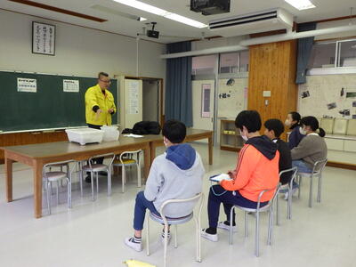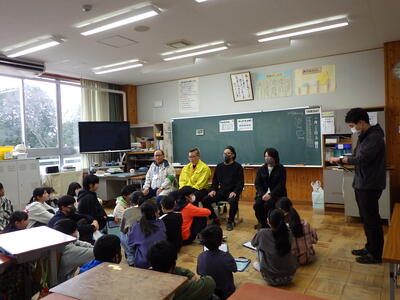 3,4年生と5,6年生に1時間ずつ授業をしてくださいました。