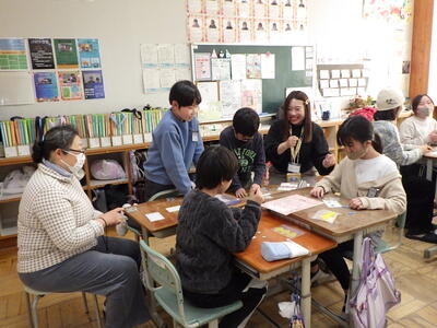 1年生活科「みんなであそぼう」の学習で,1年生の保護者の方とお正月の遊びや昔遊びをしました。