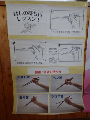子供たちは,まずは「正しい箸の持ち方」に気を付け,いろいろな使い方に挑戦することができました。
