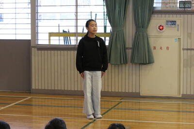 各学年の代表児童が,1年間がんばったことや今,がんばっていること,できるようになったこと,次の学年でがんばりたいことを話しました。