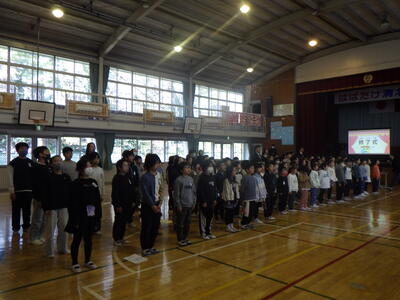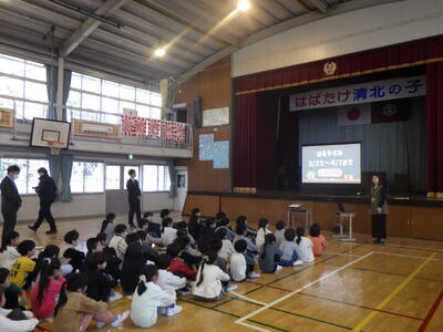その後,今年頑張ったことを思い出してもらい,春休み中に新しい学年で頑張ることを考えることが宿題ですと話をしました。