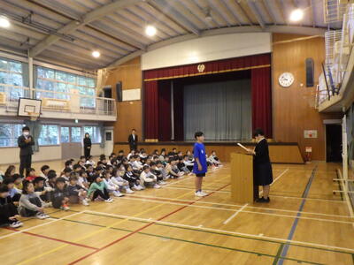 始業式後は,ピアノを継続して頑張っている児童の表彰を行いました。