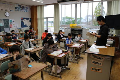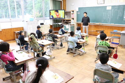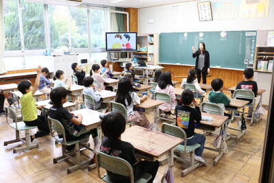 昨年度に引き続き,外国語科「This is my town」の学習で,那須高原小学校とオンラインで交流しました。