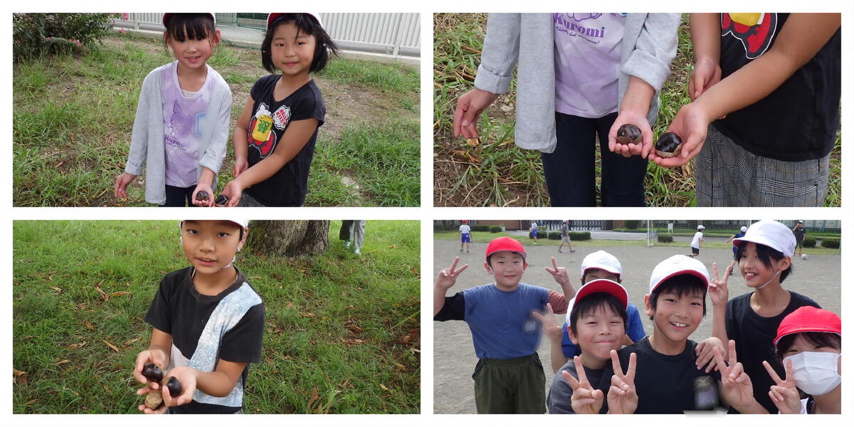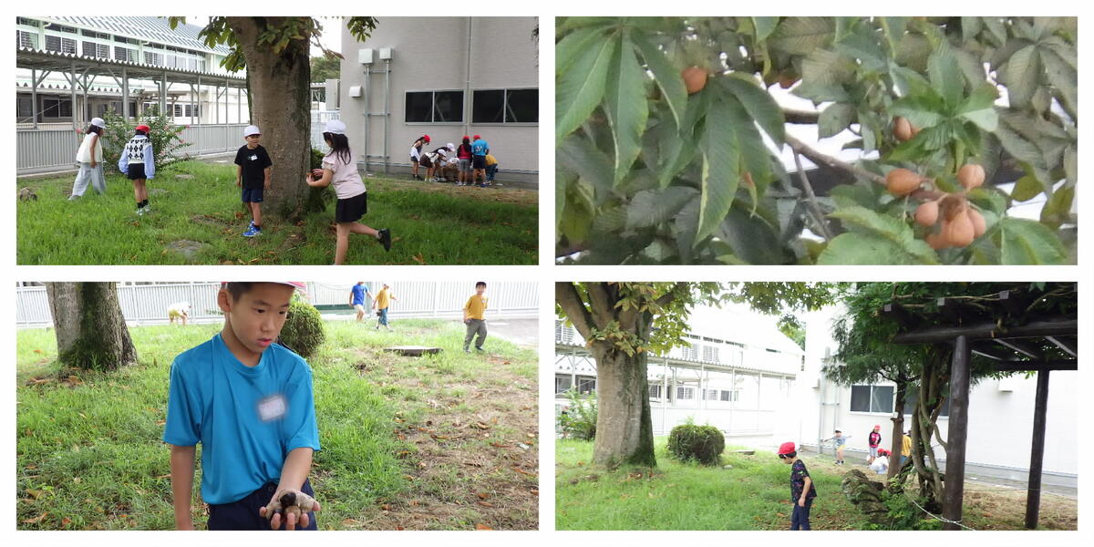 暑さの峠を越えて、休み時間には校庭で遊ぶ子供たちの姿が多く見られるようになりました。トカゲやキリギリスをつかまえたり、トチノミを拾ったり、追いかけっこをしたりと、元気いっぱいの休み時間の光景です・・・。