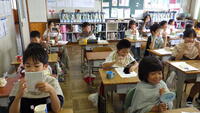 9月18日(木)、今日は担任をもたない先生方による読み聞かせの日です。6年1組の教室では、子供たちの希望により宮沢賢治作「やまなし」の絵本の読み聞かせをしました。川底から2匹のカニの兄弟が見上げる川面に、幻想的な世界が広がります。「クラムボンはかぷかぷ笑ったよ。」にある「クラムボン」とは何だったのでしょう。