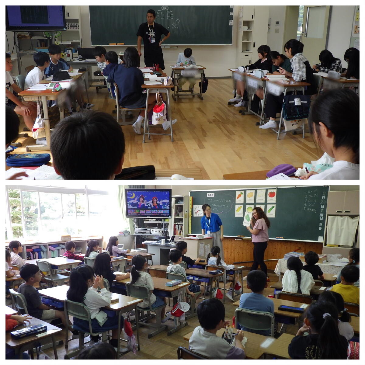 6年生の国語の授業では、「和語と外来語では、どちらが分かりやすいか」というテーマでディベートが行われていました。一方、1年生はALTや担任の先生と、英語のヒントを頼りに野菜や果物を当てるゲームに夢中でした。授業の一場面から、学年に応じた成長の様子が見て取れます。