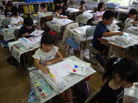 まず,水入れのきまり,パレットのきまり,机の上の用具の位置を学びました。