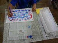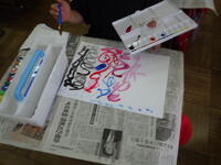 それから自分の使いたい色を選び,すいすいぐるーり と筆を走らせました。