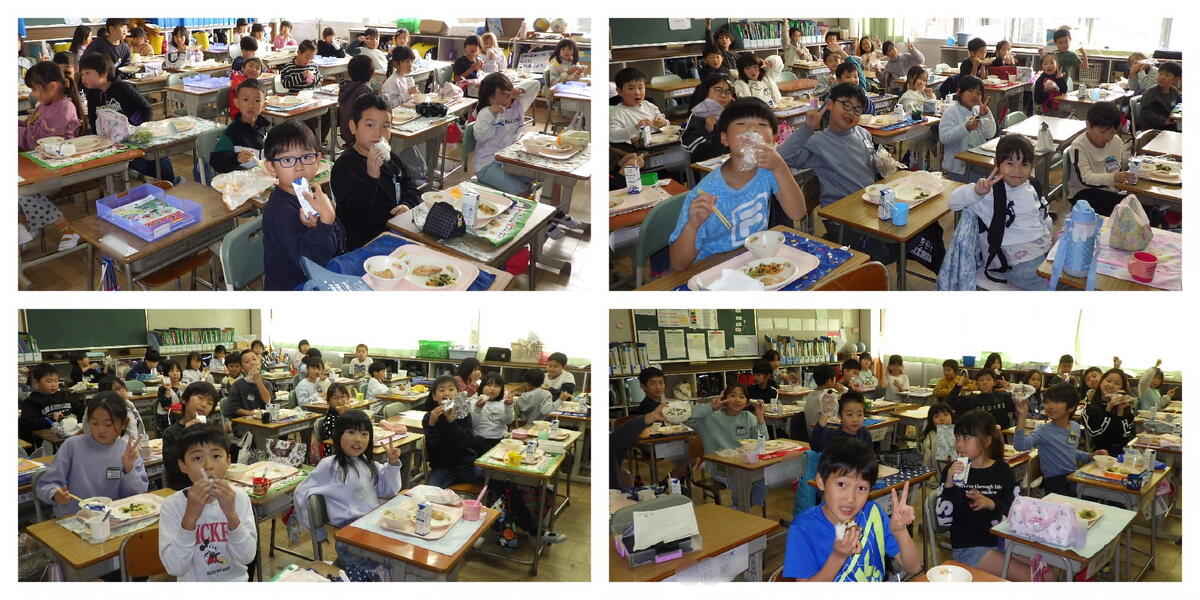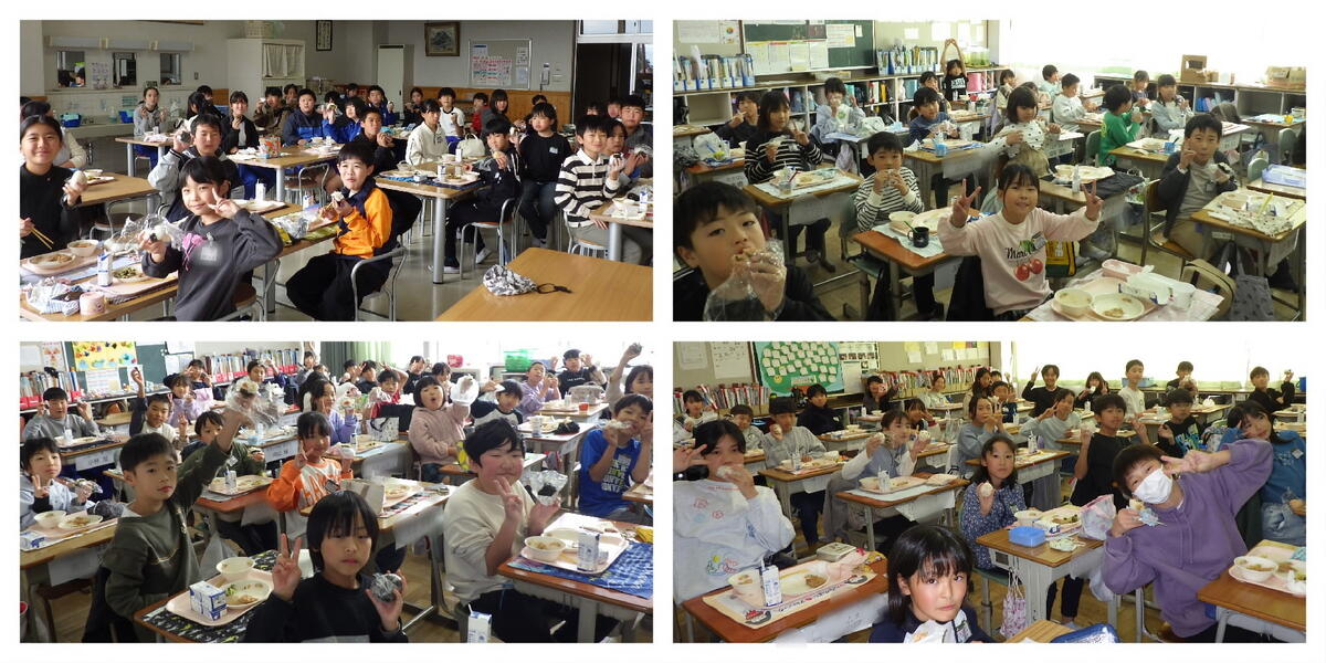 宇都宮市の小学校では「おにぎりの日」が設けられており、お家の人と一緒に家庭で握ったおにぎりを学校に持参して食べる取組です。教室を回ると、おにぎりと一緒にたくさんの笑顔を見せてくれました。この取組を通して、食事への感謝の気持ちが育まれるとともに食への関心が高まることを期待しています。
